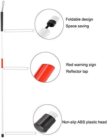 Cane shaft is covered with red and white reflector tape for nighttime visibility