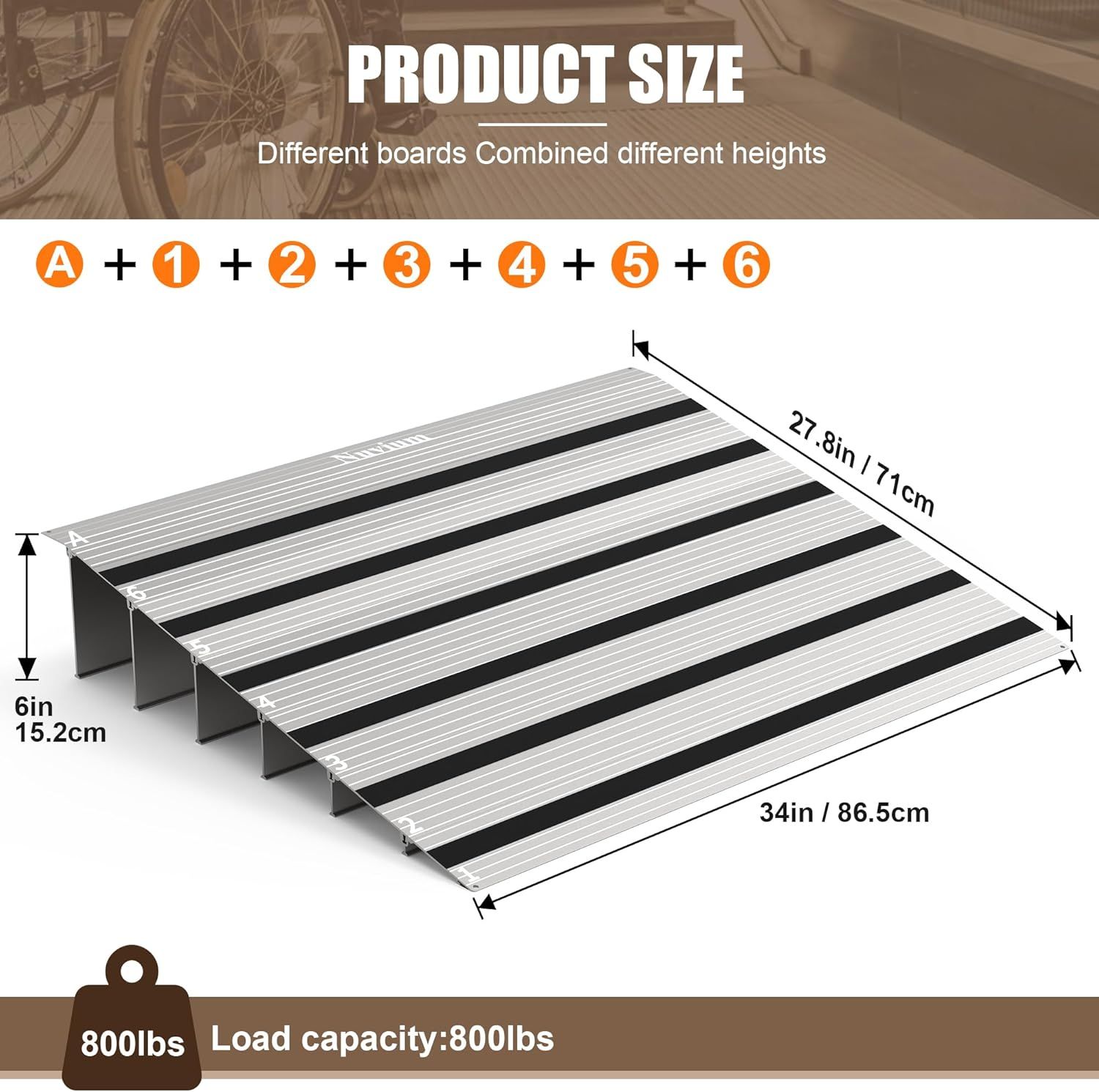 High Load Capacity: This ramp has an impressive 800-pound load capacity and supports safe passage of wheelchairs, strollers, crutches, and bicycles The robust structure offers peace of mind, assuring you of safe transit across surfaces