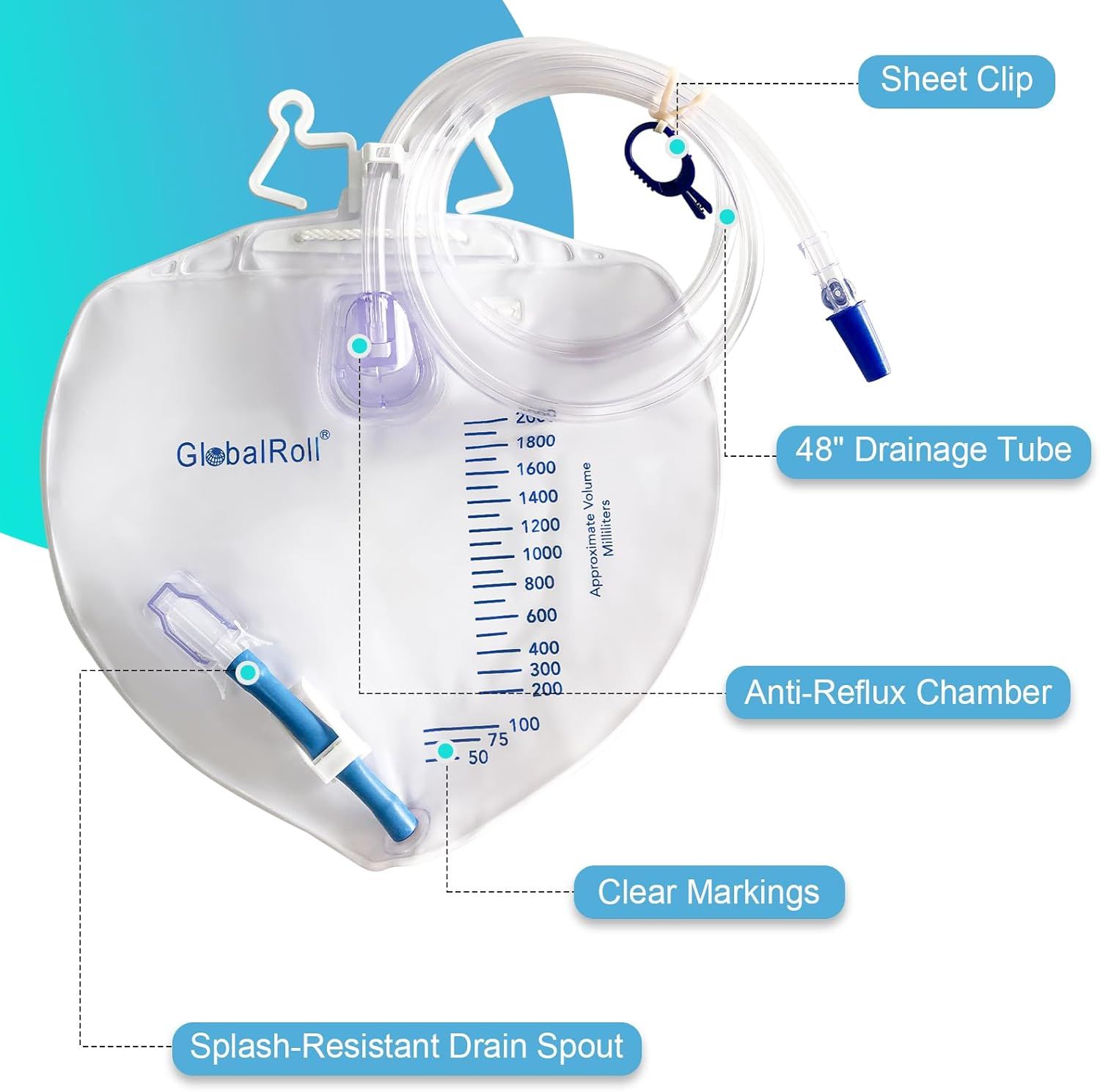 【Scope of Application】: GlobalRoll drainage bag capacity is 2000ml, won’t have to change out urine bags as frequently, saving you money and cleanup time. Mainly used for surgically coma patients, urinary incontinence and other inconvenient persons, ideal for non-ambulatory individuals, hospitalized patients and those who require incontinence care while sleeping.