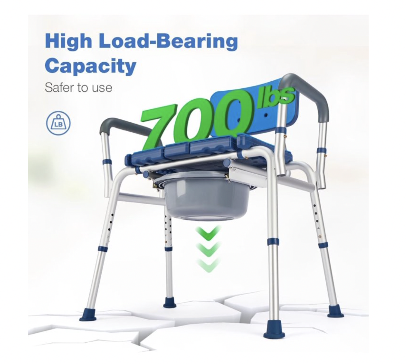 • Heavy duty 700 lb capacity: With stury anodized aluminum frame and thickened pipe wall, our commode chair with cutout seat can hold up to 700lbs. The anti-skid rubber tips and non-slip handrail improve stability and balance, this padded commode seat is ideal for bariatric, elderly, adults and disabled.