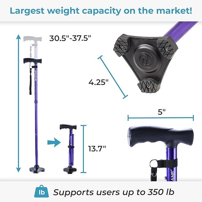 Folding Cane: Cutting-edge, patented technology allows the HurryCane, the selling walking cane for men and women in America, to feel like a seamless extension of the body