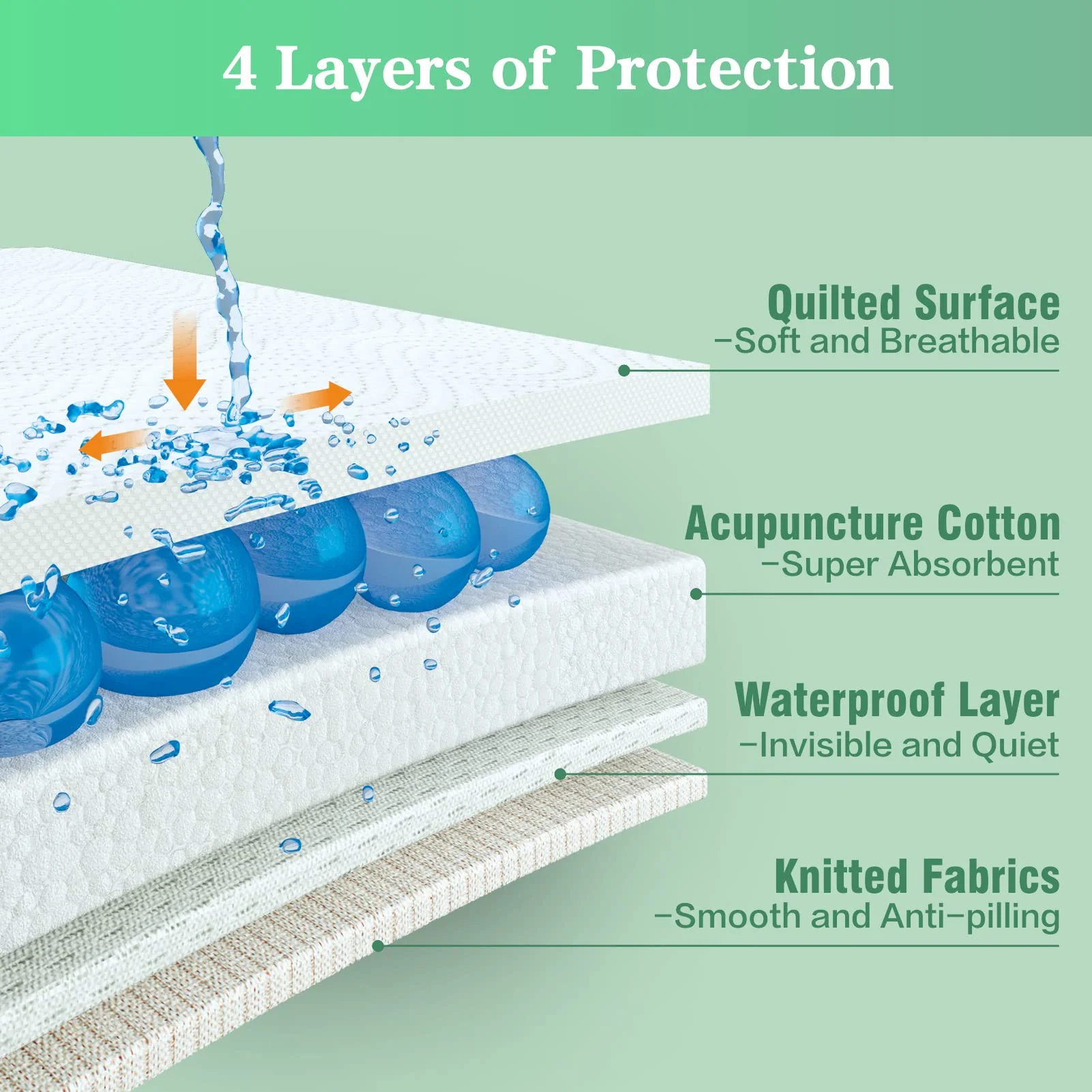 Reliability and Comfort: No Latex; No Dye; No Odors. The surface of the underpad is gentle and skin friendly. It will no noise when you turning over, please enjoy every quiet night.