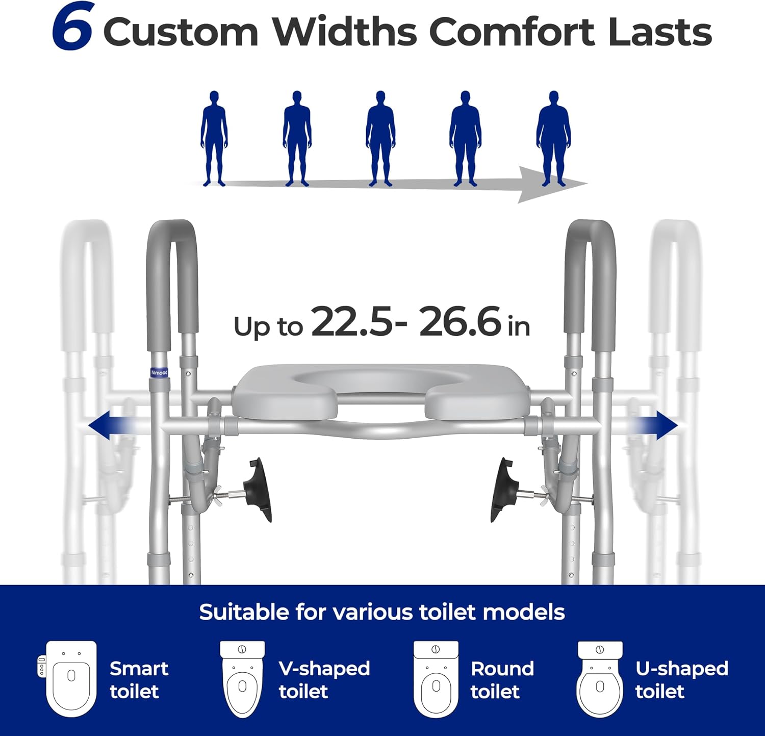 T1 Toilet Seat Riser for Seniors, Raised Toilet Seat with Handles with Adjustable Height Width, 400lb Elevated Commode Chair with Side Clamps, Handicap Toilet Seat for Elderly
