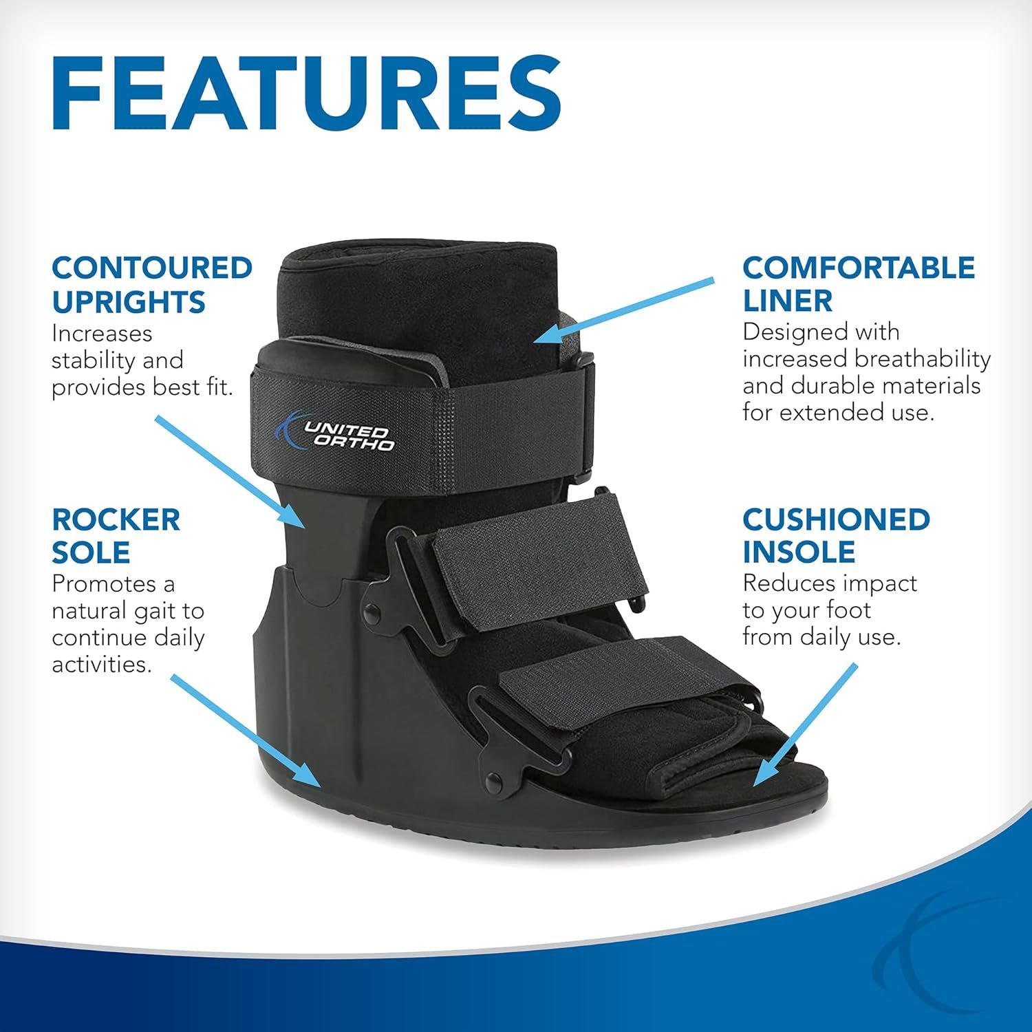 United Ortho Short Air Cam Walker Fracture Boot, Small, Black