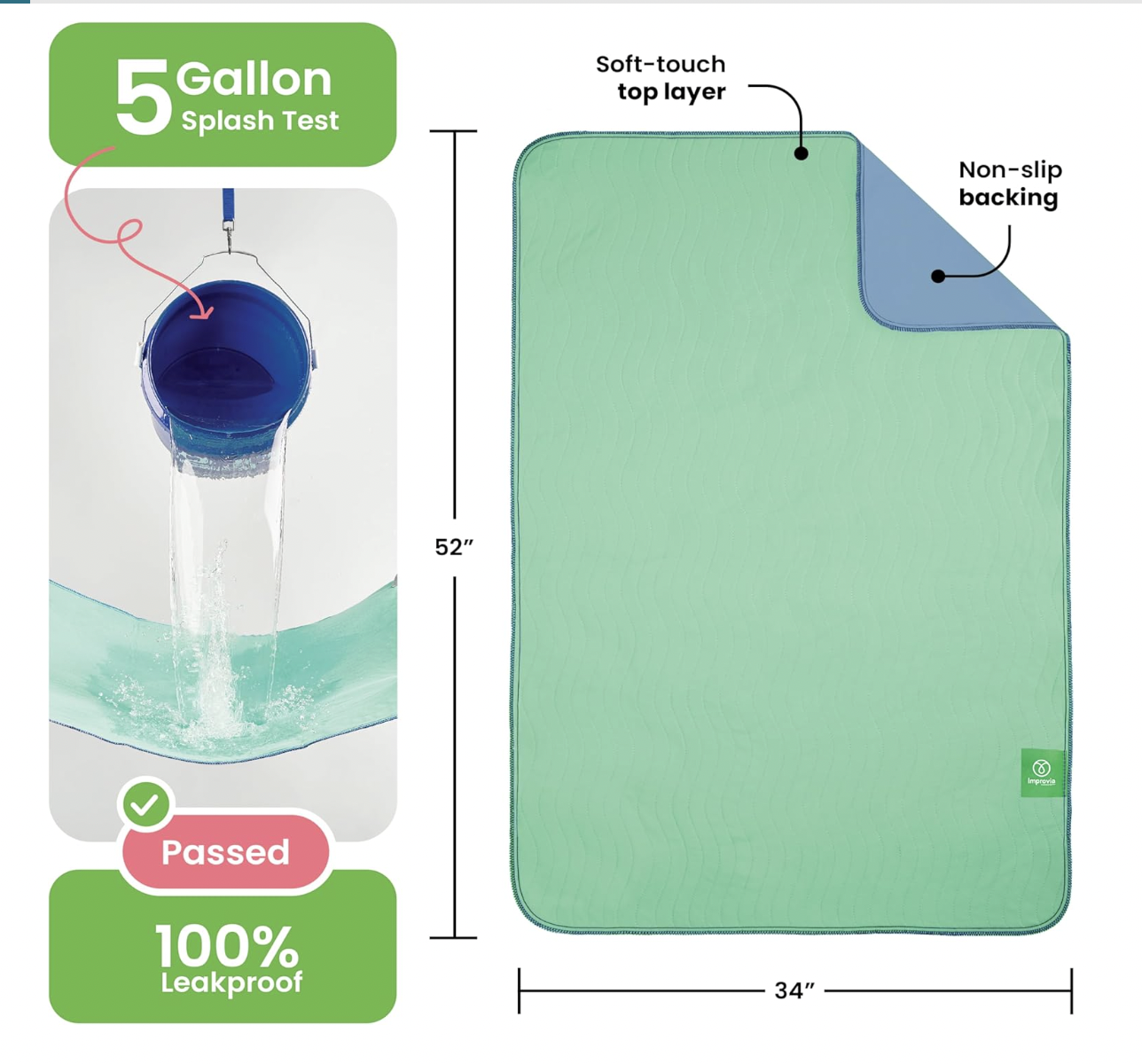 MAXIMUM ABSORBENCY – IMPROVIA Reusable Underpad is a revolutionary Incontinence Pad that provides faster and more effective fluid absorption. It is the only absorbent pad that wicks the fluid to the edges – serving as a barrier for 100% leakproof protection.